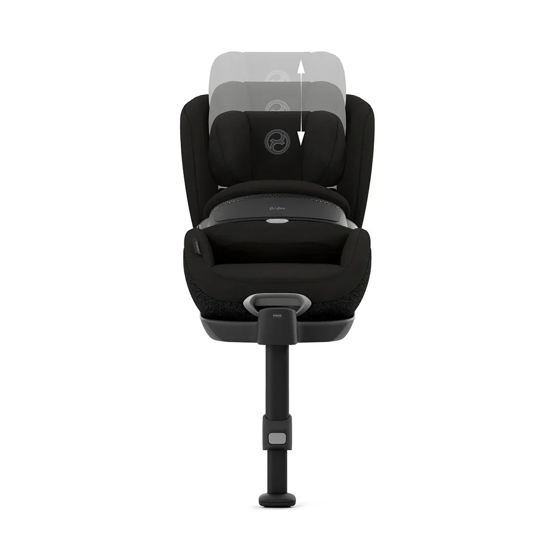 The Cybex Anoris T2 i-Size in Sepia Black is a world leader in forward-facing car seat technology. A full-body airbag is housed in a small impact shield, upgraded with a depth-adjustment feature for a snug fit and freedom to move. Forward-facing travel allows more legroom, as well as easy interaction and eye contact with your child via your rear view mirror. On hot days, all-round air ventilation is enhanced by innovative mesh that's six times more breathable than normal car seat fabrics, while a retractable sun canopy gives shade. After the Cloud T i-Size, the Anoris T2 i-Size is the ideal successor until your child turns seven.
