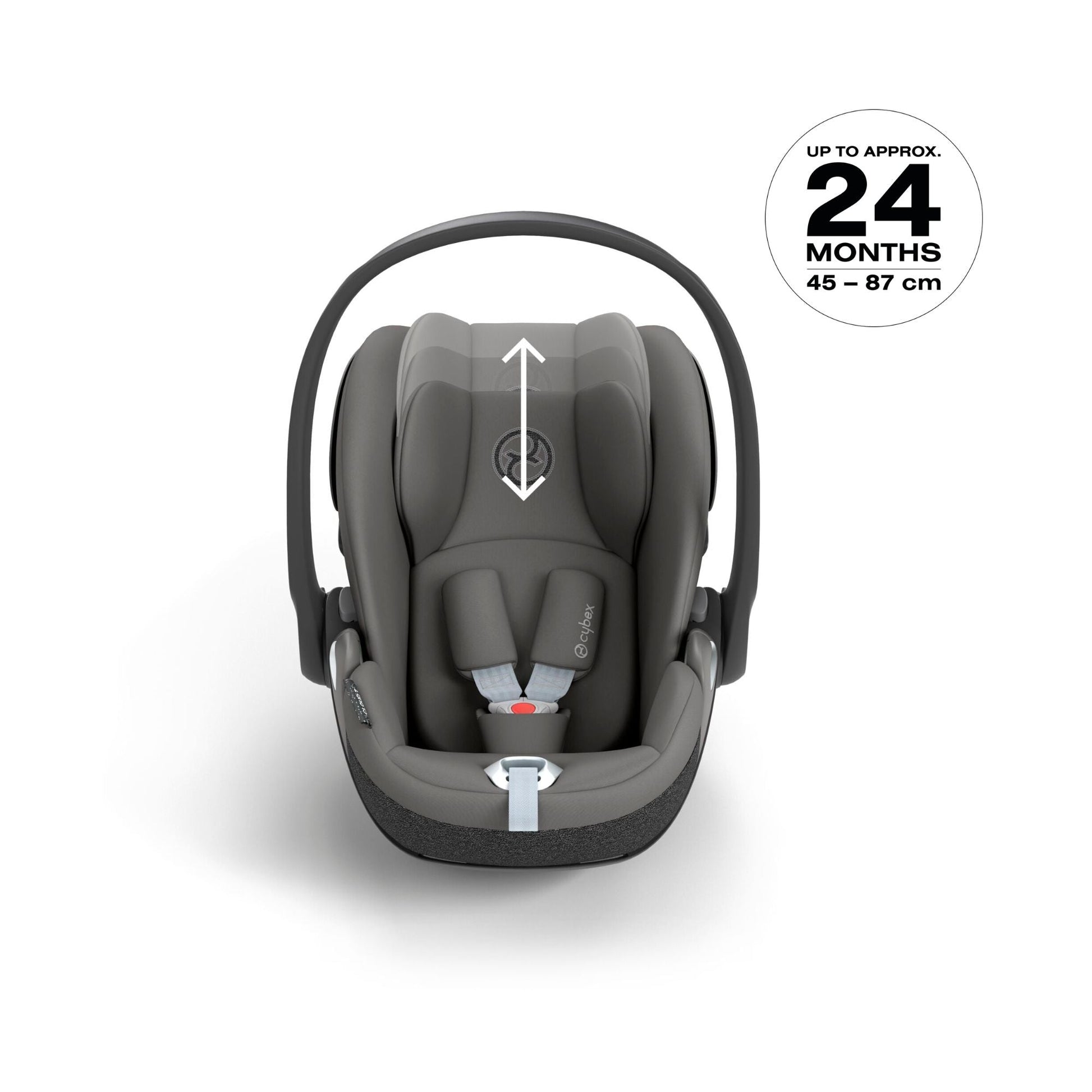 The Cloud T i-Size infant car seat in Mirage Grey lasts from birth to 87cm approx. 24 months, it is the ultimate all-rounder for comfortable and flexible journeys with your child, both inside and outside the car. It offers an in-car recline position when used with the ISOFIX Base T (sold separately), providing a comfortable and safe ride. When used as part of a travel system the Cloud T i-Size gives you full flexibility by offering an outstanding, ergonomic lie-flat position, meaning your baby has unrestricted breathing and is at a safer reclined angle whilst their lungs are still developing.