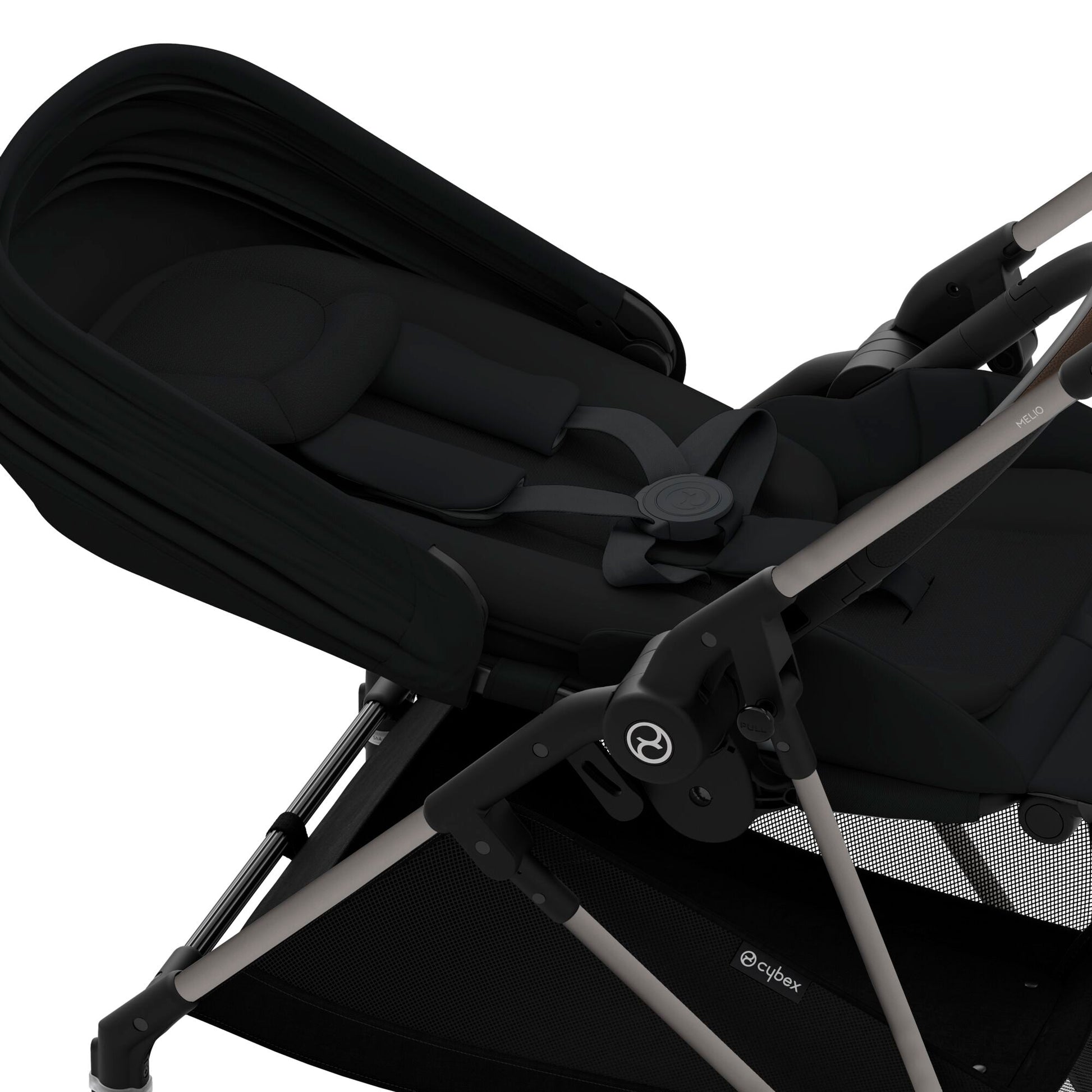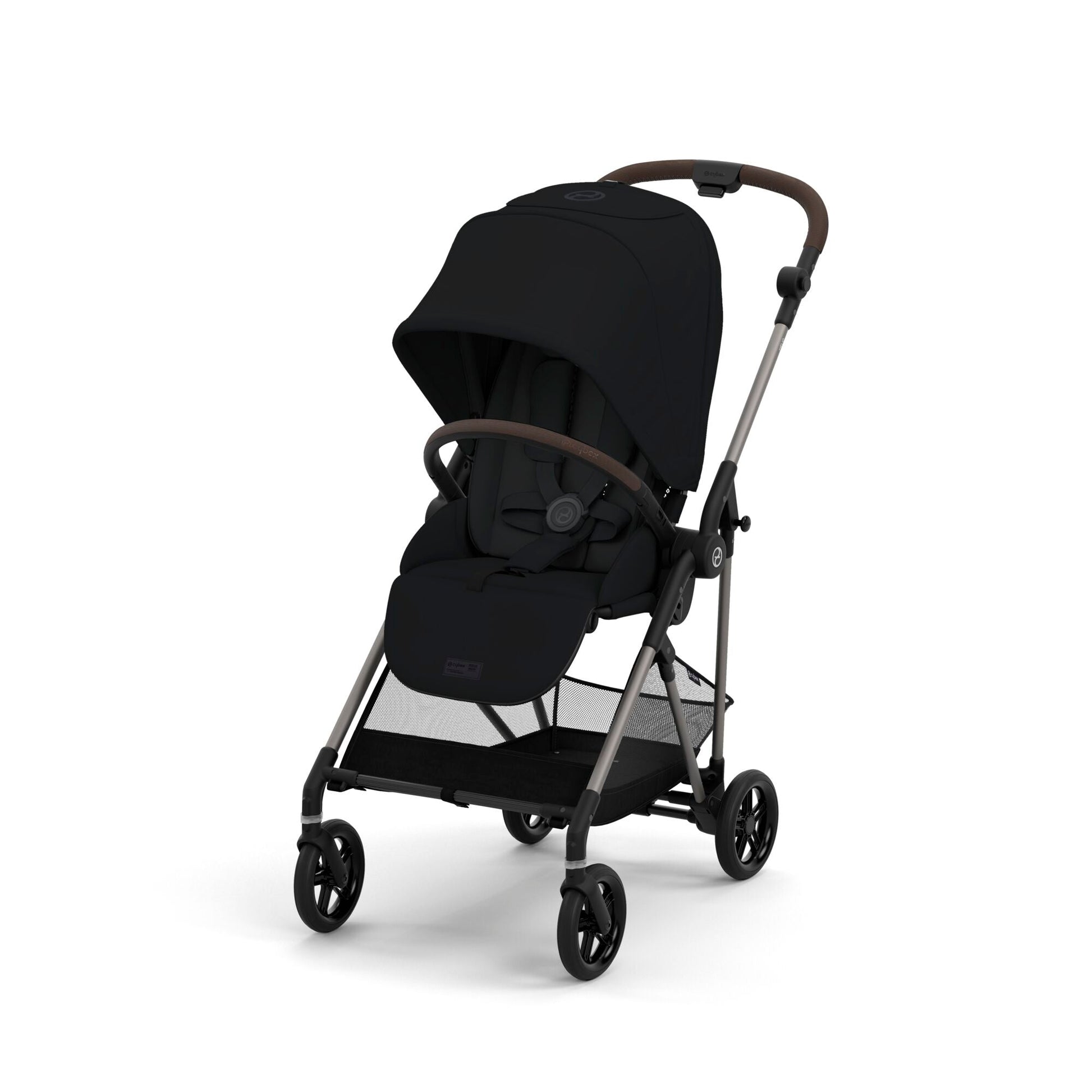 The Cybex Melio pushchair in Magic Black makes it easier than ever to boutique, brunch, and weave through life in the big city.