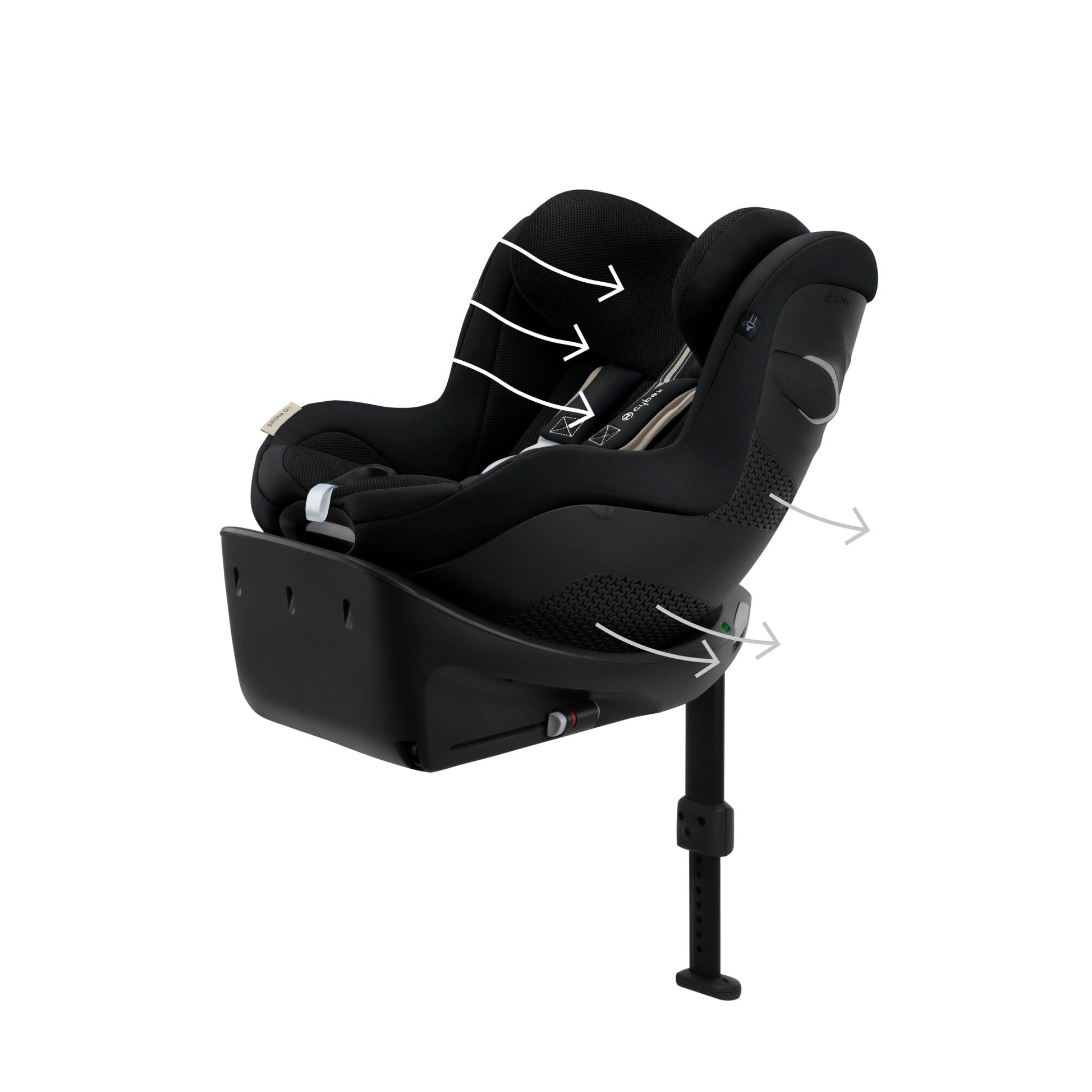 - Optimal breathibility - The all-round air ventilation of Sirona Gi i-Size allows air to flow through ventilation channels within the car seat, carrying away heat and helping avoid a hot and sweaty ride for your little one. Choosing the mesh fabric available on the Plus version increases airflow even more – with up to 6 times more breathability than comparable car seat fabrics.