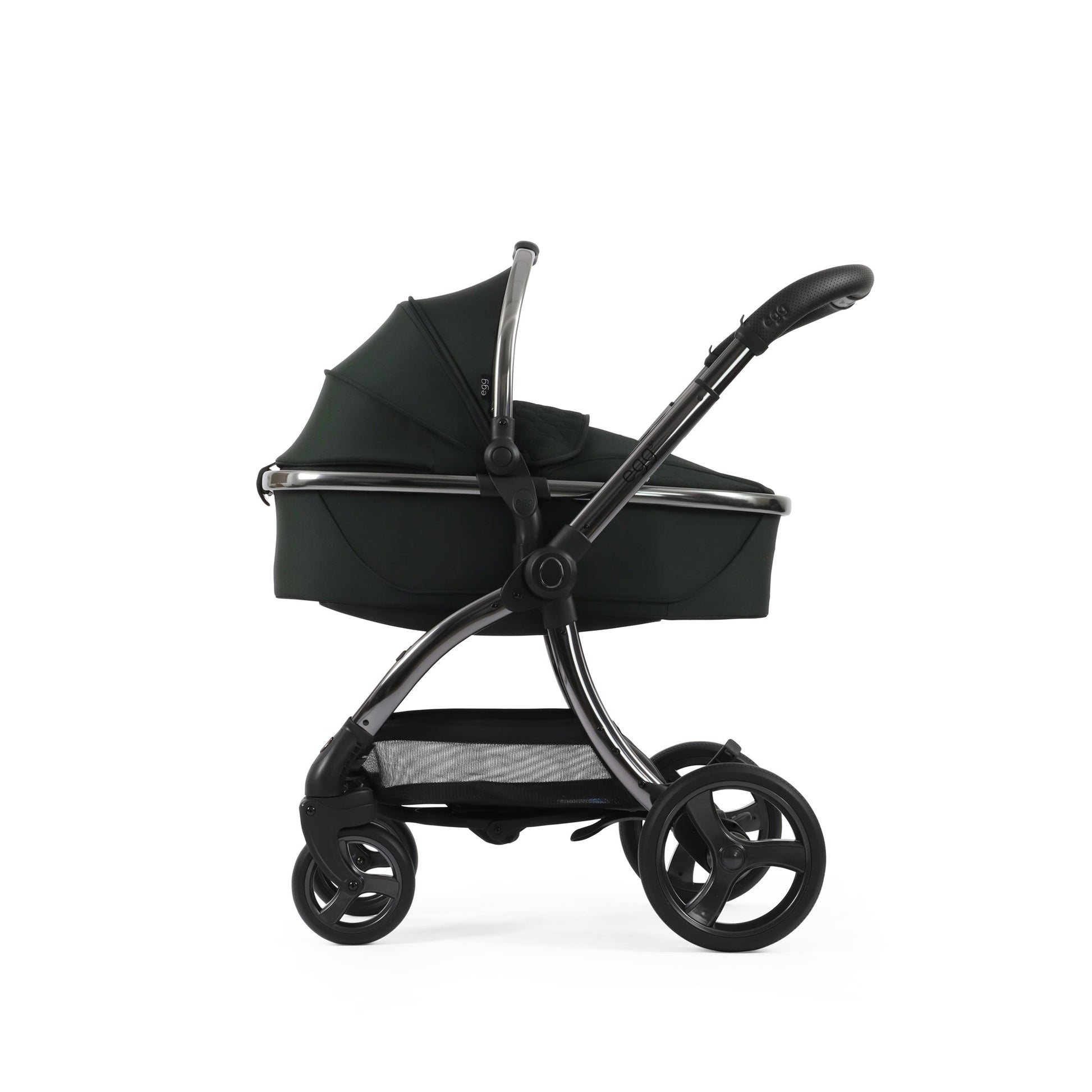 The egg3 9 Piece Snuggle Bundle in Black Olive signature soft-touch marl fabrics dress the classic egg3® gunmetal chassis, while the black hand-stitched handle and bumper bar adds depth of contrast to complete the whole aesthetic.
