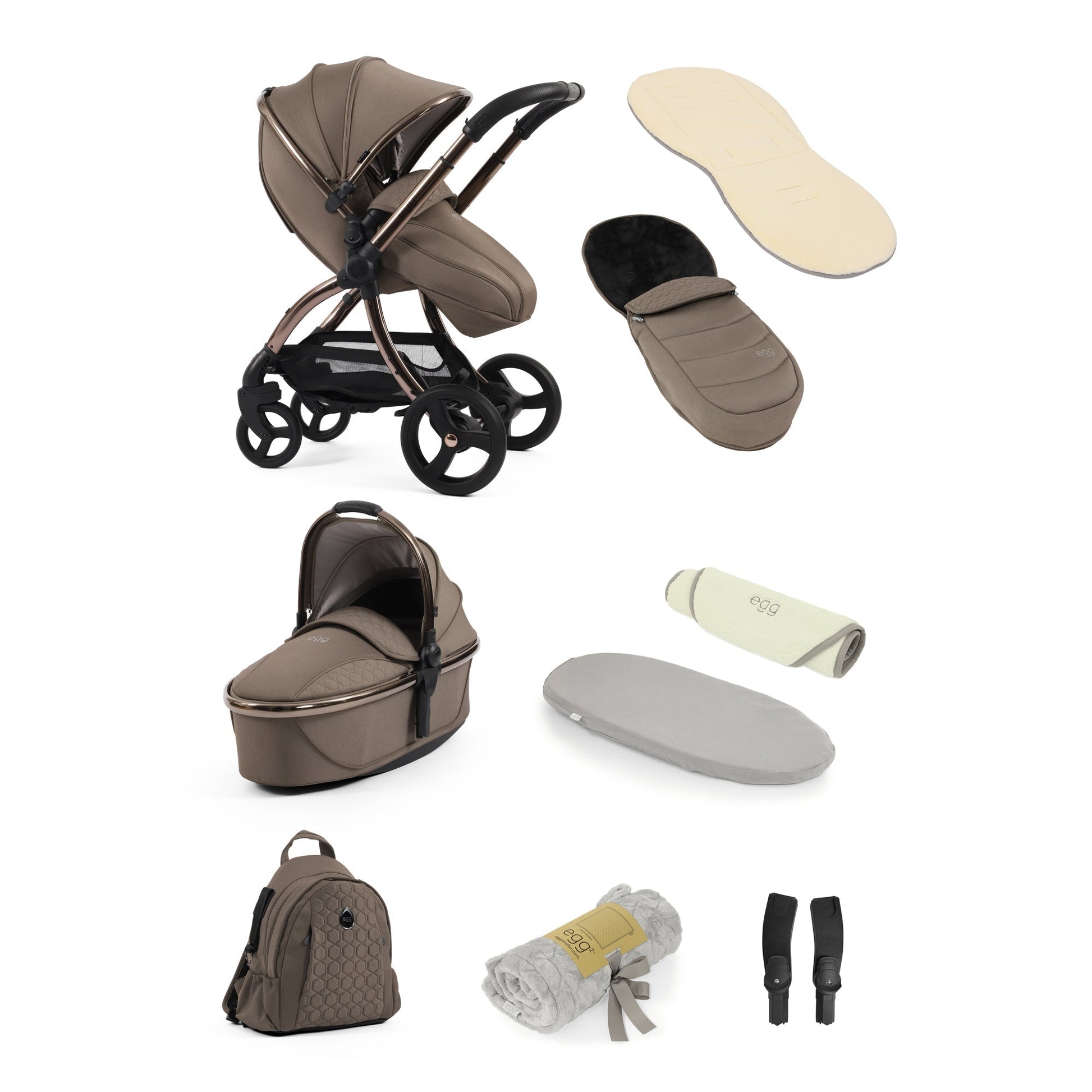 The egg3 9 Piece Snuggle Bundle in Mink tawny browns with hints of green embrace within the soft weaves of the fabric to create a colour and feel that would not look out of place on a Parisian catwalk. Combined with our new minted bronze chassis, this combination sets a new standard that the others are going to have to run to catch up with.